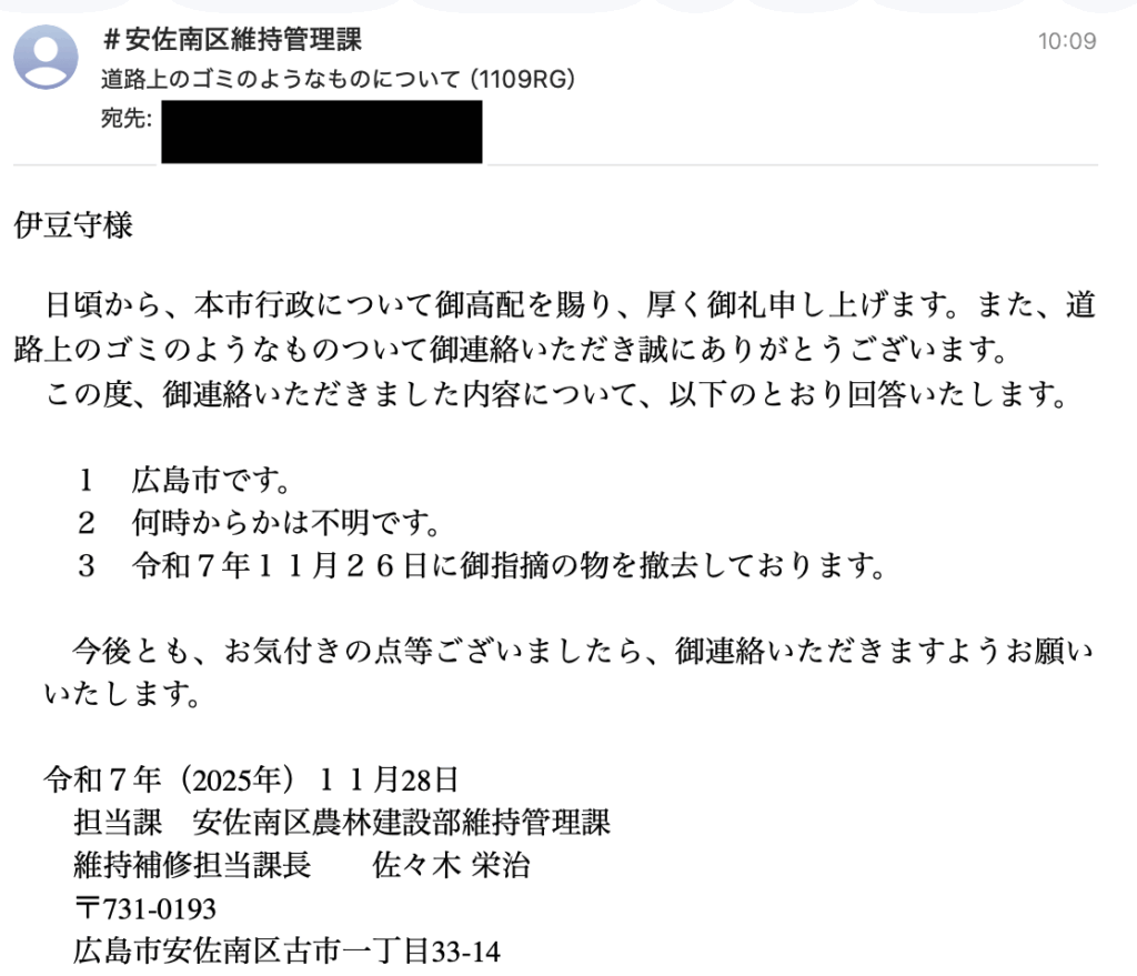 安佐南区「道路上のゴミ」回答に感じるモヤモヤ